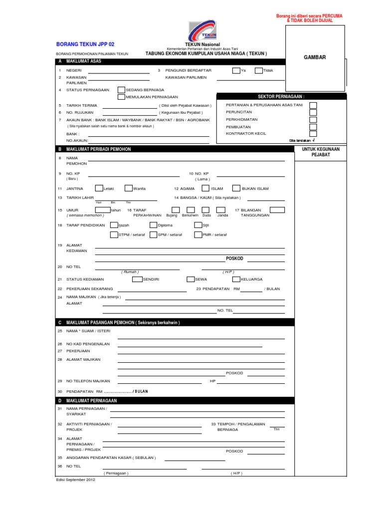 Jpp Borang 02 Borang Permohonan Pembiayaan Tekun Pdf